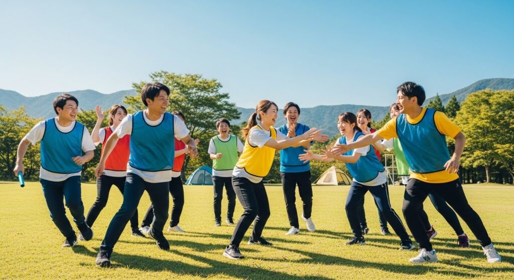 - チーム対抗の大運動会型プログラム(大縄跳び、リレー、協力ゲーム)