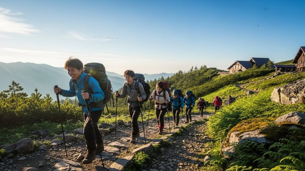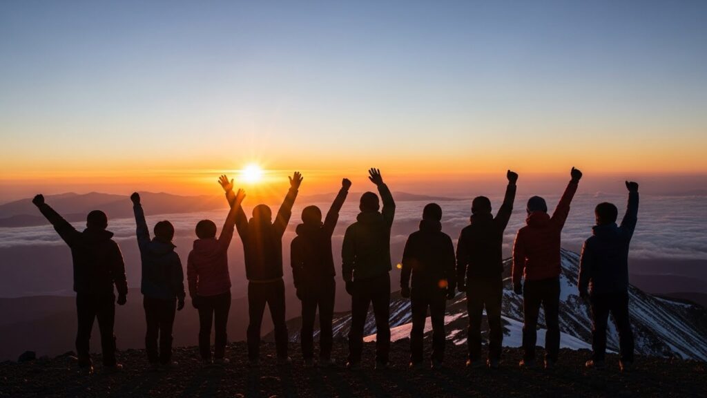 そして辿り着いた山頂。 雲海から昇る、神々しいご来光。 圧倒的な達成感が、疲れを吹き飛ばします。