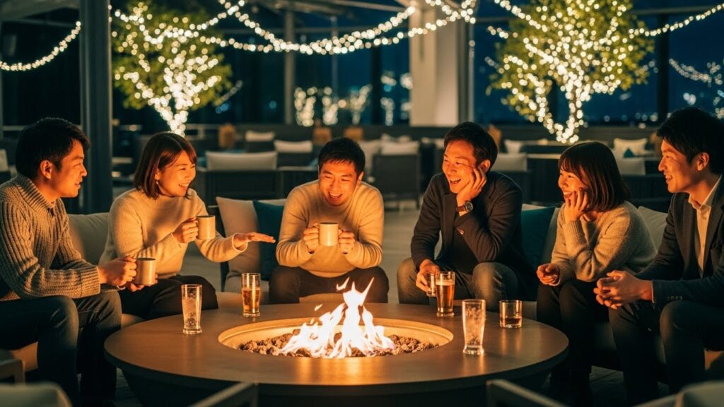 昼間の緊張感から解放され、アルコールも少し入り、リラックスした状態で交わされる対話(ダイアログ)こそが、組織文化を醸成します。上司と部下という縦のライン、部署という横の壁が、夜の闇と炎の前では溶けてなくなります。