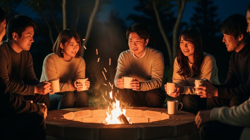 炎を見つめながら、横並びで話す。 「最近、眠れてる?」「実はちょっとしんどくて」。 最終的には、上司と部下、同僚同士が弱さを共有できる関係性が構築されます。 「何かあったら相談できる相手がいる」。 この安心感こそが、最強のメンタルヘルス対策です。
