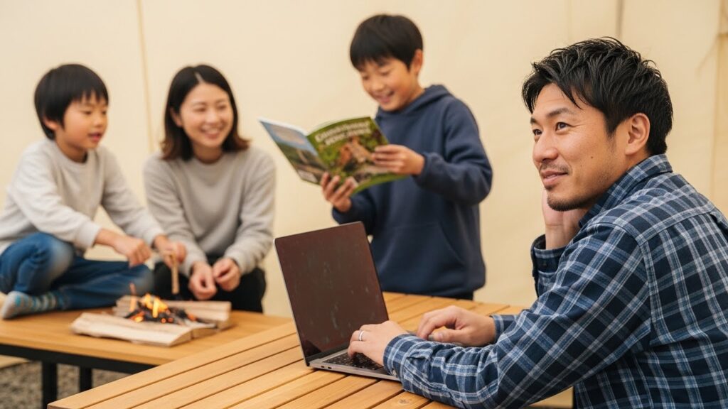「仕事が終わったら、一緒に焚き火でマシュマロを焼こう」。 その約束があるから、短時間で猛烈に集中できる。 家族を犠牲にするのではなく、家族の存在をエネルギーに変える。 罪悪感のないワーケーションが、家族の絆をより深めます。