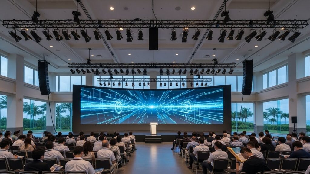 例えば、社長が登場する際のオープニング映像や、音楽と照明を連動させた演出が可能です。 言い換えれば、参加者を観客にさせず、イベントの当事者として巻き込む没入空間を作れます。 この高揚感こそが、方針の浸透度を劇的に高めます。