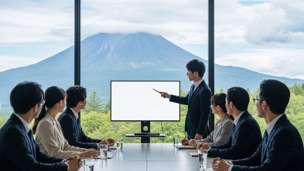 Scene 2:収束(Convergence) 午後は、屋内のセミナールームへ。 午前中に出たアイデアを持ち帰り、冷房の効いた静かな部屋で、論理的に整理し、戦略に落とし込む。 スクリーンに数字を映し出し、現実的なプランを練り上げる。