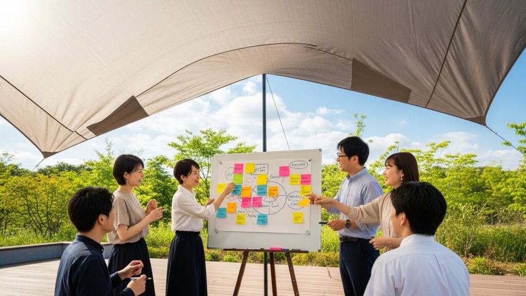 - 成果: 「オンラインでは沈黙しがちだったメンバーが、外だと喋るようになった」。2日間で3つの新サービス案が固まり、翌月にはプロトタイプが完成した。
