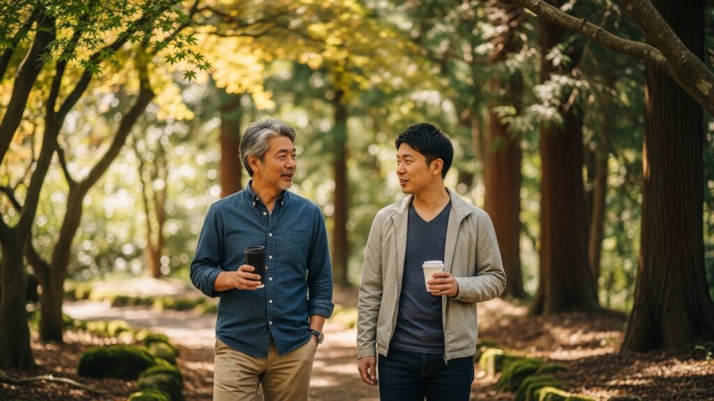 - ウォーキング・ミーティング: スティーブ・ジョブズも愛した「歩きながらの会議」。森の散策路を歩きながら議論することで、血流が良くなり、思考が活性化します。「机上の空論」ではなく、「地に足のついたアイデア」が生まれる瞬間です。