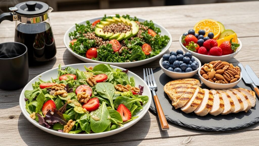 - 低GI・高タンパク: 地元野菜をふんだんに使ったサラダや、グリルチキンなど、血糖値の上昇を緩やかにし、集中力を持続させるメニューを提供します。