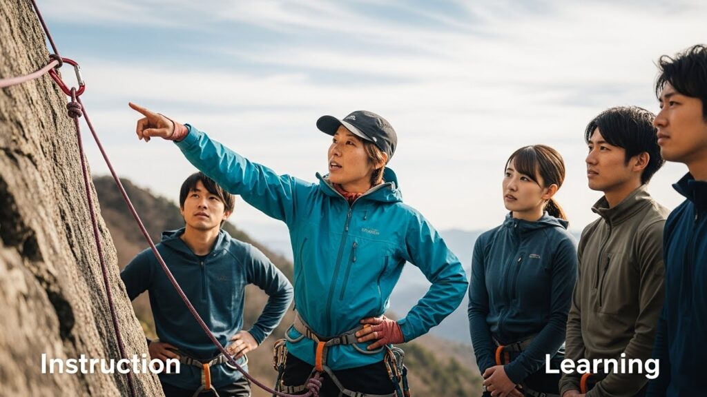 「フックを掛け忘れたら落ちる」。 こうした緊張感の中で、相互に装備を確認し合う(ダブルチェック)体験は、座学の何倍ものインパクトがあります。 言い換えれば、なぜルールがあるのか、なぜ確認が必要なのかを、理屈ではなく本能で理解するのです。