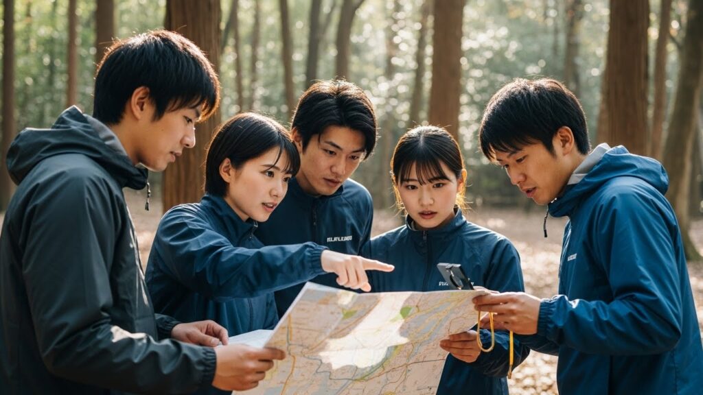ビジネスの基本はPDCA(計画・実行・評価・改善)です。 そのため、当施設では座学ではなく、アクティビティを通じてこれを体感させます。 例えば、地図とコンパスを頼りにポイントを探す「ロゲイニング」。 制限時間内に高得点を取るためには、戦略(Plan)が必要です。 実際に走り回り(Do)、うまくいかなければ作戦を変更し(Check)、ゴールを目指す(Action)。