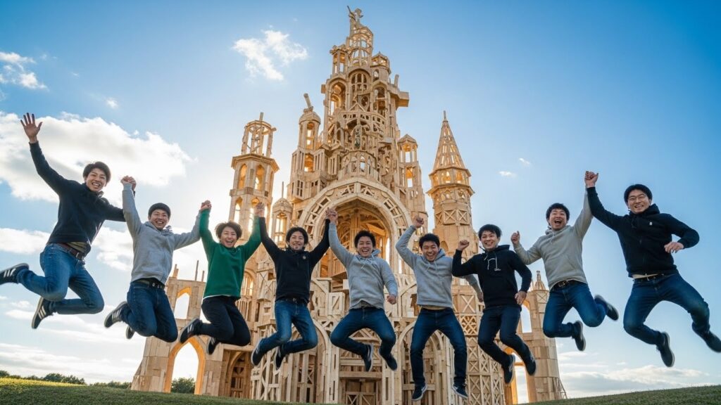 - 言葉禁止で、ジェスチャーだけで巨大な塔を建てる。