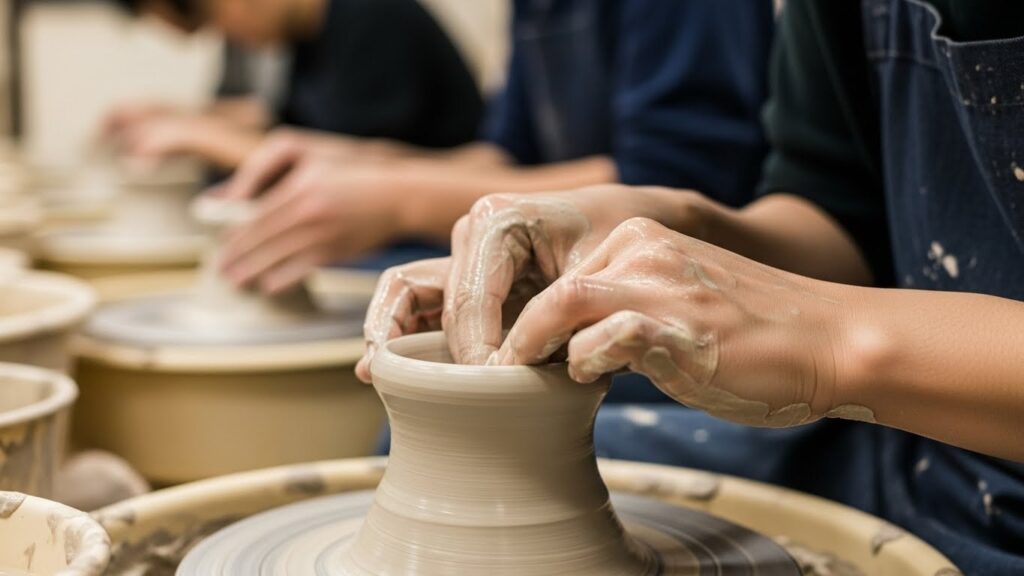 - 陶芸: ろくろを回し、土の感触を味わう。