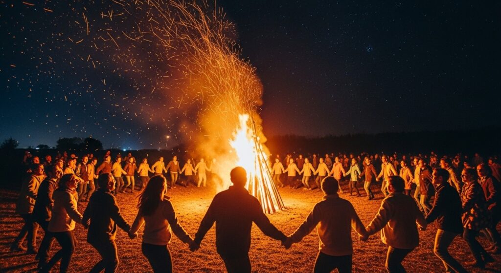 - 体験: 巨大キャンプファイヤーを囲んでのマイム・マイム(ダンス)。