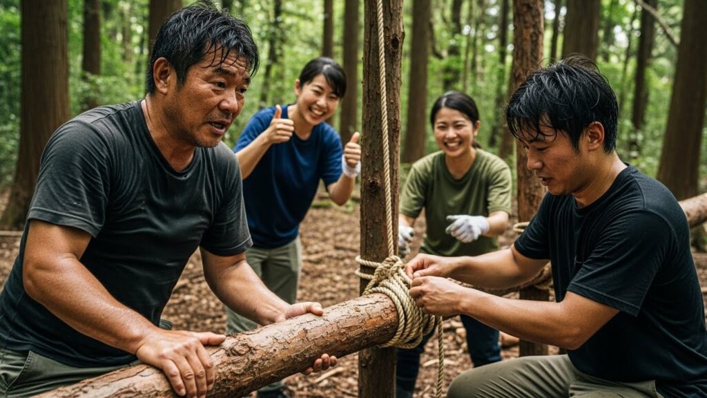 普段はパソコンの前で固まっている若者が、生き生きと木を削る。 普段は指示ばかりの部長が、若手の指示に従って丸太を運ぶ。 汗だくになり、泥汚れを気にせず作業に没頭する中で、互いへのリスペクトが「肩書き」から「人間力」へとシフトします。