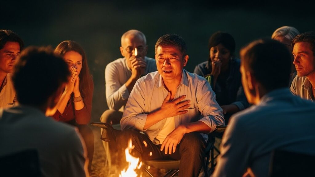 揺らめく炎を見つめながら語られる、トップの人間臭いエピソード。 それを聞いた社員たちは衝撃を受けます。 「社長も、私たちと同じ人間なんだ」 「雲の上の人だと思っていたけど、同じように悩んでいるんだ」