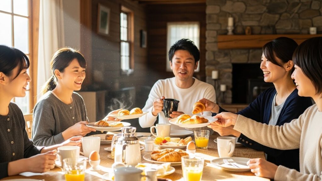 さらに、食事の時間は最強のチームビルディングです。 まさにこのために、当施設ではコース料理だけでなく、チームで作るアウトドアディナーや、大皿を囲むビュッフェスタイルも提案しています。 「これ美味しいね」「誰が取り分ける?」 実際には、こうした些細な共同作業と感情の共有が、チームの心理的安全性を高めます。 食事を共にすることは、生物として仲間であることを確認する、最も原始的で強力な儀式なのです。