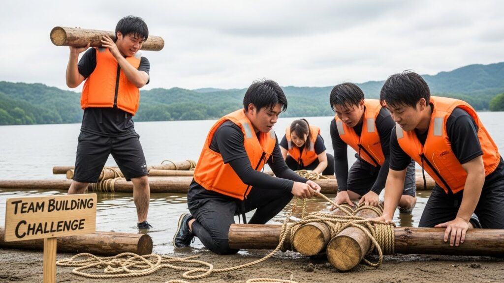 当然ながら、口先だけのチームワークでは意味がありません。 共に汗を流し、困難を乗り越える体験が必要です。 具体的には、アドベンチャー・ラリーやイカダ作りなどのプログラムがあります。