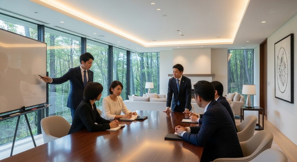 1. 独立型ヴィラによる物理的隔離 本館から離れた森の中に点在するヴィラを、チームごとの拠点として使用します。隣の建物とは十分な距離があり、大声で議論しても、ホワイトボードにM&Aのスキーム図を描いても、誰にも見られません。