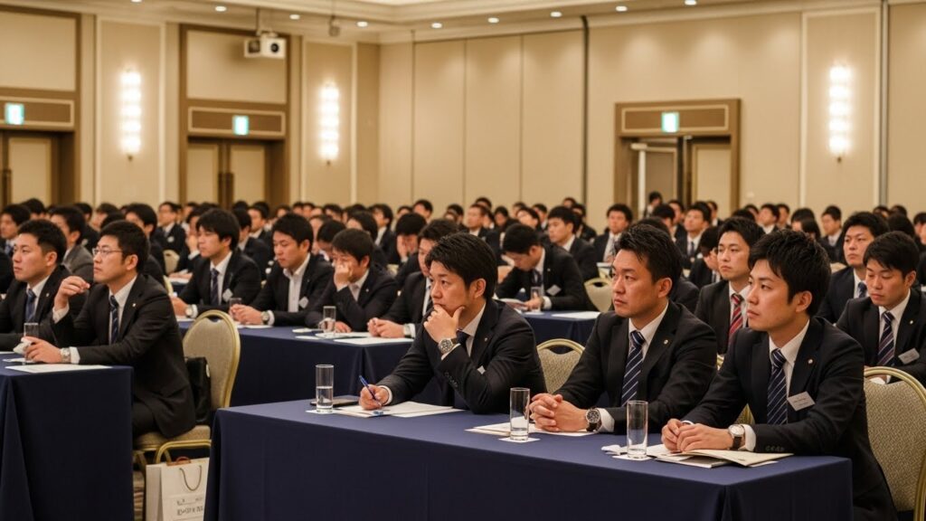 当然ながら、期初のキックオフとして、販売戦略を共有する場です。 具体的には、ホールでのプレゼンテーションに加え、分科会形式で「どうすれば売れるか」を議論する時間を設けます。 一方的なノルマの押し付けではなく、共に戦略を練るプロセスを踏む。 つまり、彼らを「実行部隊」として巻き込むことで、当事者意識を高めます。