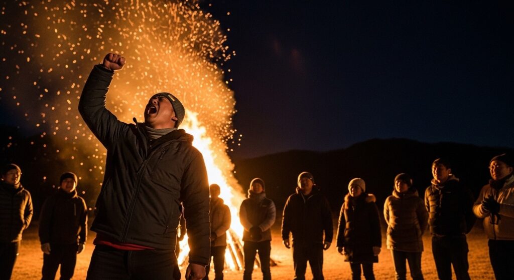 - Day1夜: 巨大キャンプファイヤーを囲んでの「決起集会」。全店長が「今期の必達目標」を叫ぶ。