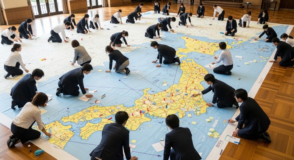 部署の境界線(サイロ)を消しゴムで消し、顧客にとって最適な体験(UX)を再設計する。 完成した巨大なマップは、全員の合意形成の証です。 「俺たちは、この地図を持って戦うんだ」。 その共通認識が、迷いのない迅速な連携を生み出します。