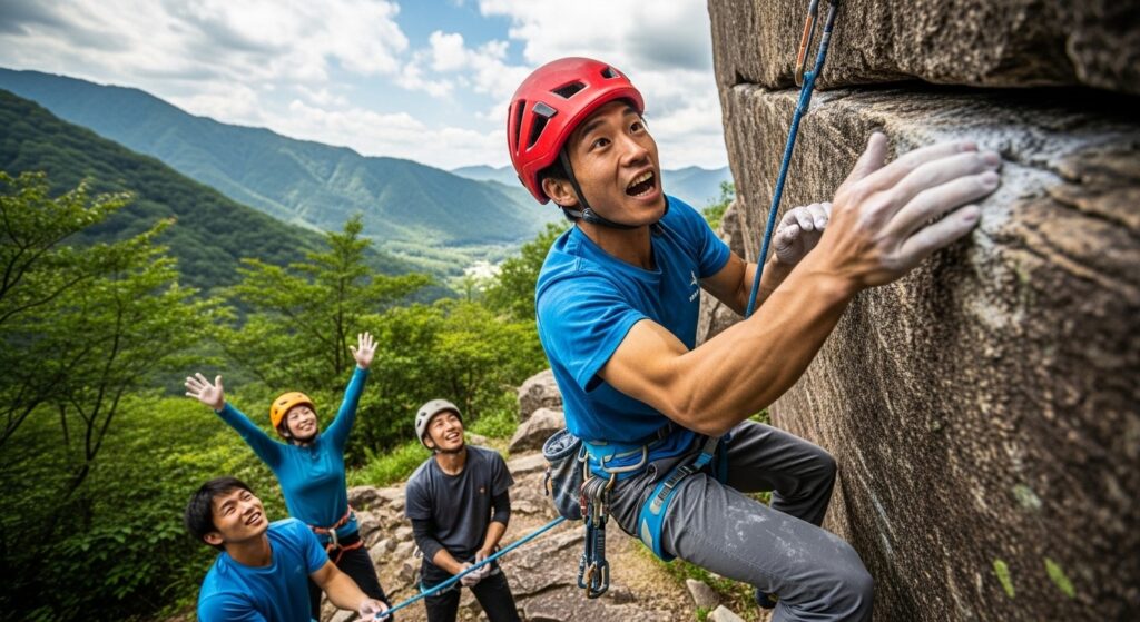 - アクティビティ: 「ロッククライミング」。自分の手足だけで壁を登る。落ちても、ロープを信じてもう一度登る。