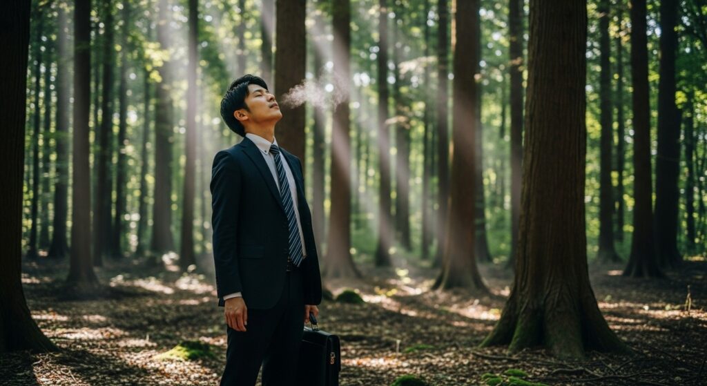 森林の湿度や香りは前頭前野のストレスを下げる。
