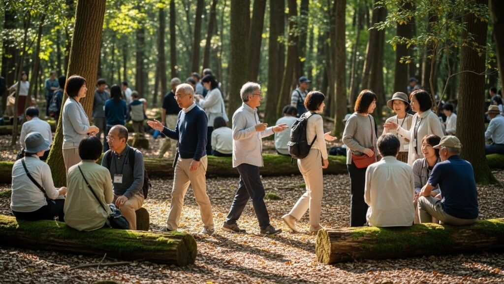 「この木の根っこ、複雑に絡み合ってるけど全体を支えてるね。組織もこうあるべきじゃない?」 目の前の自然現象をメタファー(比喩)にして、組織論を語る。 抽象的な概念が、具体的なイメージとして共有されます。 PCの画面を見つめるのではなく、同じ景色を見つめて語ることで、視点の同期(シンクロ)が起こりやすくなるのです。