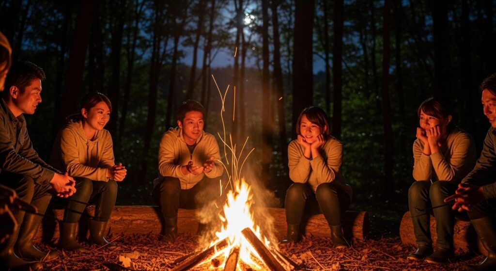 2日目の夜の焚火では、初日とは違う深い対話が生まれる。