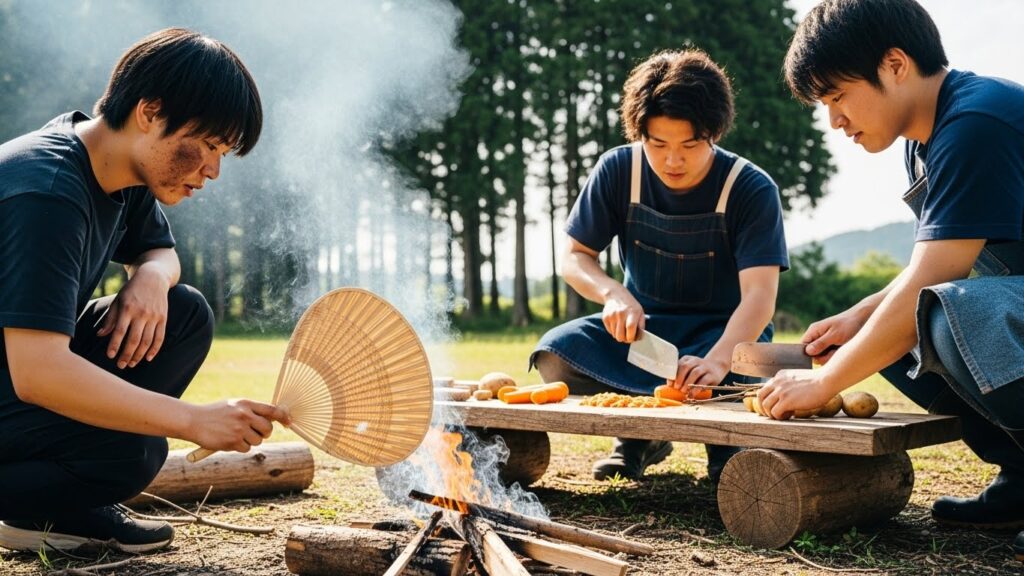 「昼食はカレーです。ただし、火は自分たちで起こしてください」 ガスコンロも着火剤もありません。 あるのは、薪と、わずかな道具だけ。