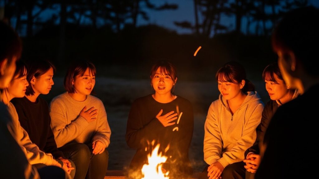 暗闇と炎の揺らぎが、心のガードを下げます。 「実は、自分はコミュ障で、営業でやっていけるか不安なんだ」 「私は、本当は別の業界に行きたかったけど、ここで頑張ると決めたんだ」
