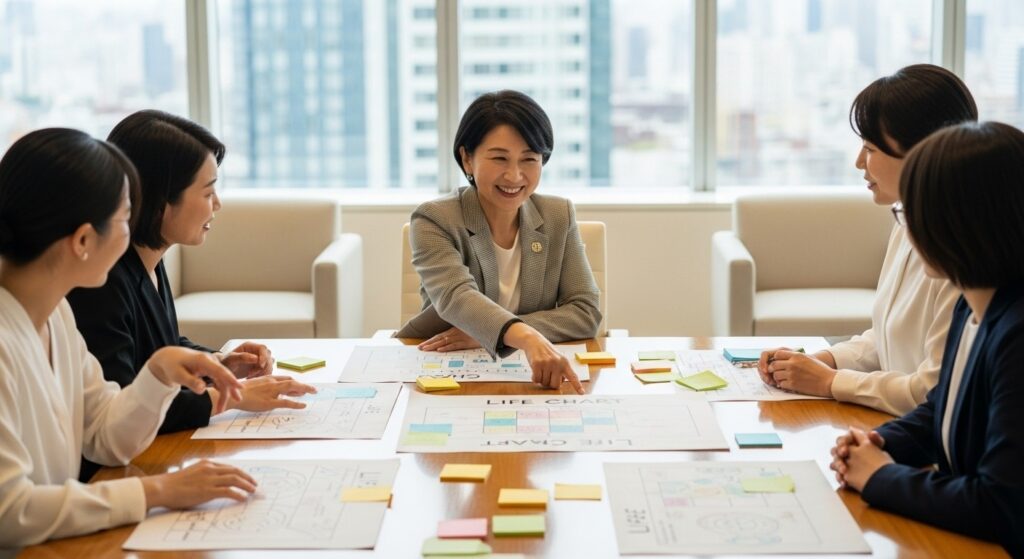 これらを分断されたものとして捉えるのではなく、全ての経験が自分のキャリアの糧になっていると再定義します。 さらに、先輩女性役員(ロールモデル)をゲストに招き、キャリアの分岐点での決断や、失敗談をざっくばらんに話してもらうパネルディスカッションも効果的です。 「完璧なスーパーウーマンに見えるあの役員も、昔は私たちと同じように悩んでいたんだ」と知ることは、次世代リーダーたちにとって大きな勇気となります。