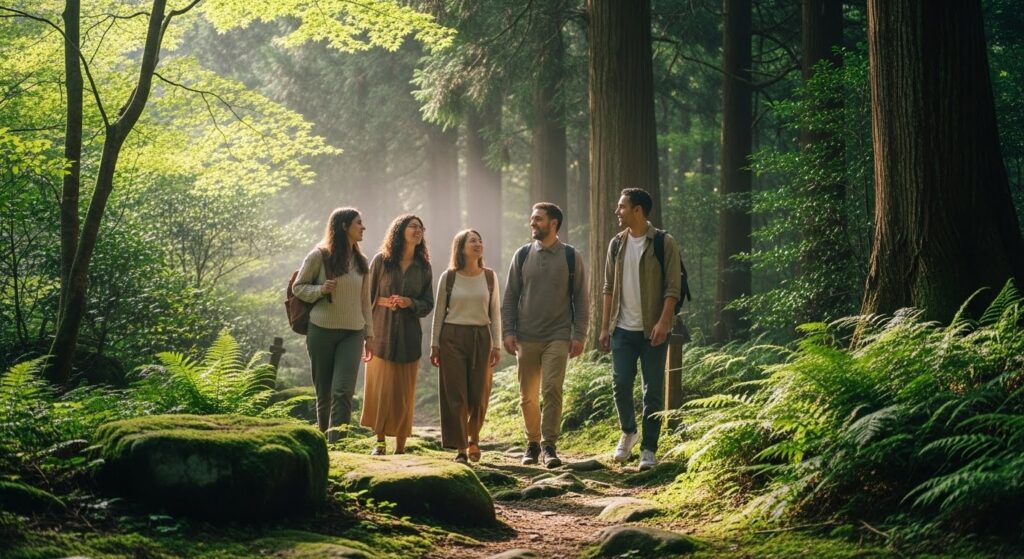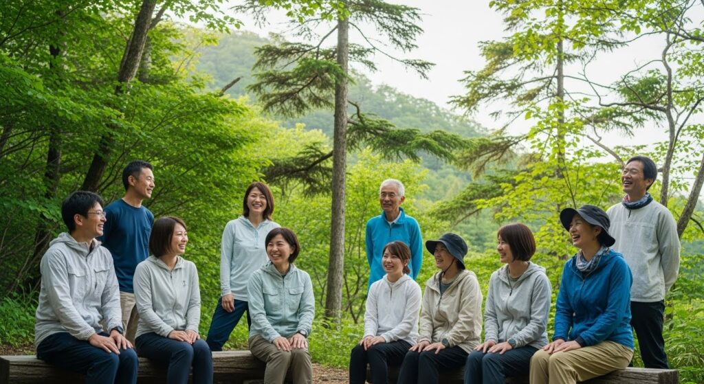 自然の中でチームが笑い始めた瞬間、
