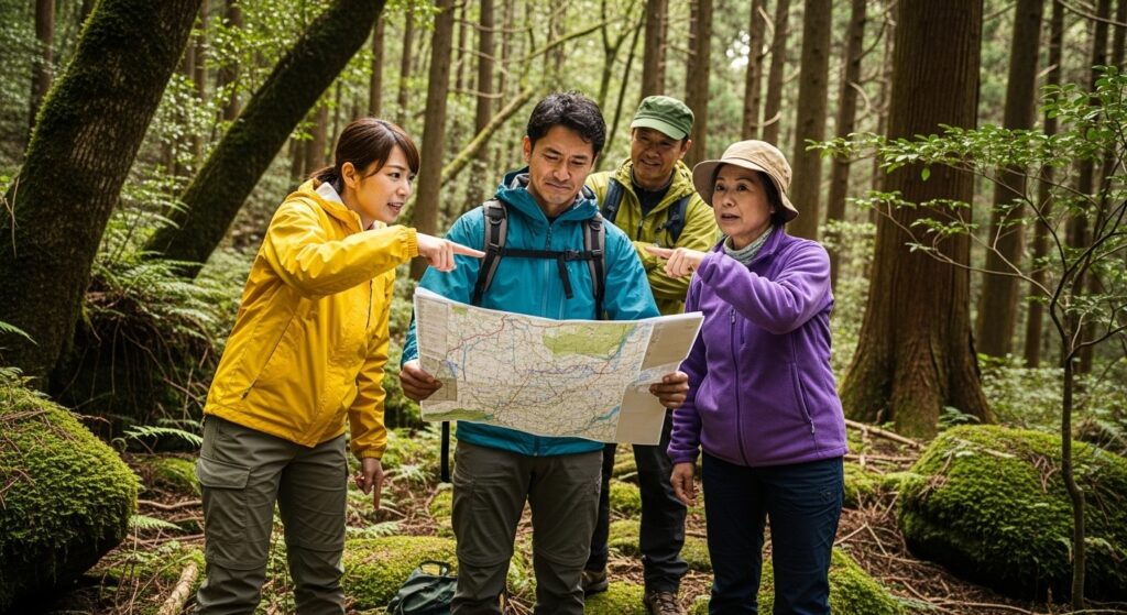 最初に行うのは、「地図読みオリエンテーリング」などの、ビジネススキルが全く通用しないアクティビティです。 森の中で道に迷い、泥だらけになりながら、 「こっちの道であってるかな?」 「いや、太陽の方角からするとあっちだ」 と、必死に相談する。