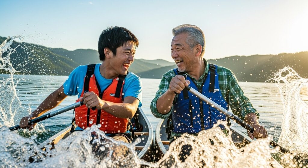 共にカヌーを漕ぎ、共に火を起こし、共に飯を食う。 理屈抜きの共同作業は、警戒心を好奇心に変えます。