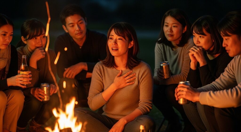 夜のアクティビティは、焚き火を囲んでの「ライフ・ストーリー・シェア」です。 自己紹介プレゼンのような表面的なものではありません。 「子供の頃、何になりたかったか」 「人生で一番挫折した経験は何か」 「なぜ、数ある会社の中から、この会社を選んだのか」