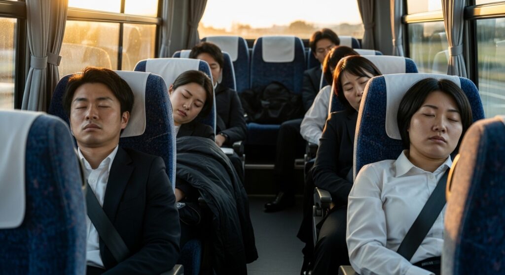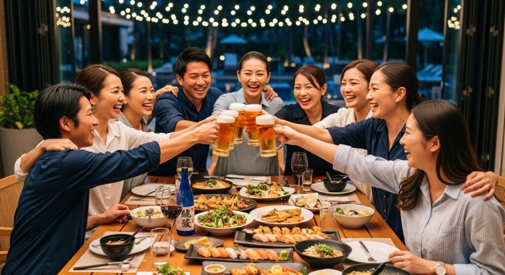 - 夜は「同期会」と称して、深夜まで飲み明かす。