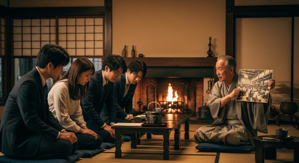 語り部の声の震え、炎に照らされた表情。 それらを通じて、今の会社が「当たり前」に存在しているわけではないこと、多くの先人たちの「熱」と「恩」の上に成り立っていることを肌で感じます。
