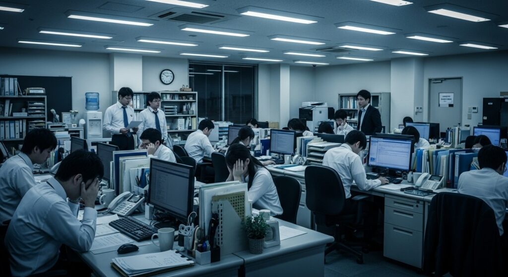 企業のメンバーは毎日同じ場所で同じ時間に同じ姿勢で仕事をしている。