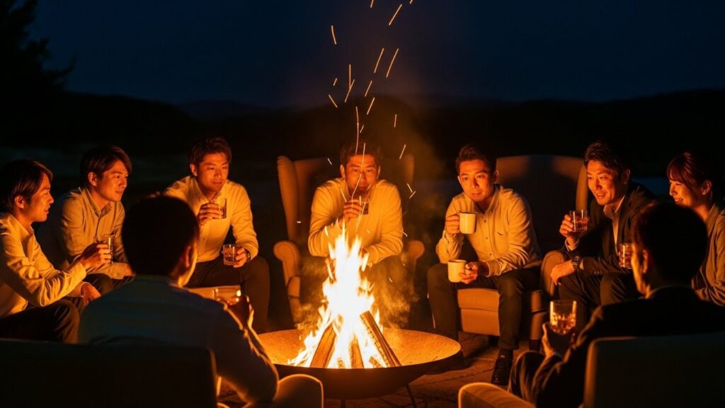 実は、共に食事をし、同じ屋根の下で眠るという行為は、人間の本能的な警戒心を解く最強のアプローチです。 具体的には、オキシトシン(愛情ホルモン)の分泌が促され、「この人たちは仲間だ」という認識が脳内で強化されます。 その結果、会議室では決して出ない「弱音」や「本音」が共有され、心理的安全性(Psychological Safety)が劇的に向上します。