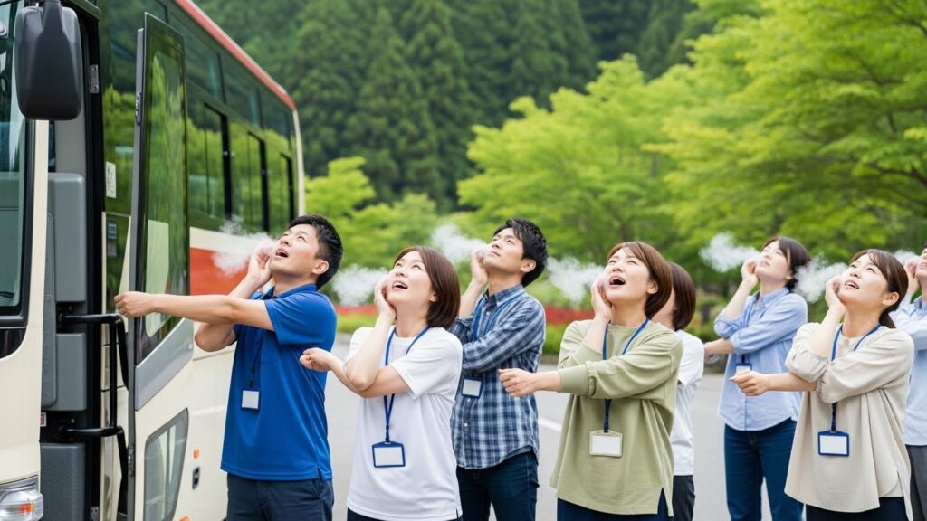 バスが市街地を抜け、山道を登り、窓の外に雄大な自然が広がってくる。 スマホの電波が弱まり、代わりに鳥の声や風の音が大きくなる。 この物理的な環境の変化が、脳に強烈なシグナルを送ります。