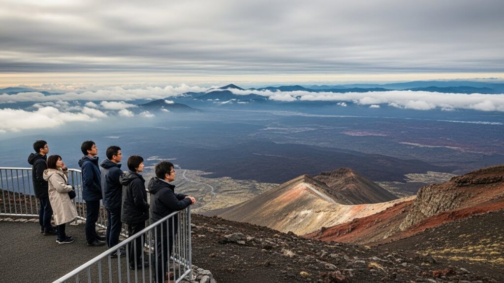 早朝、活火山の噴火口を見下ろすポイントへ。 目の前にあるのは、数万年前から活動を続け、この大地を創り上げてきた地球のエネルギー。 人間の一生など、瞬き一回分にも満たない悠久の時間。