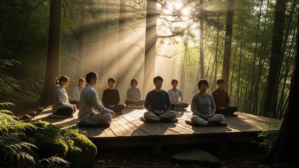 - 早朝の座禅やヨガで精神統一を行い、日中はハードな研修、夜は温泉と焚き火でリラックス。