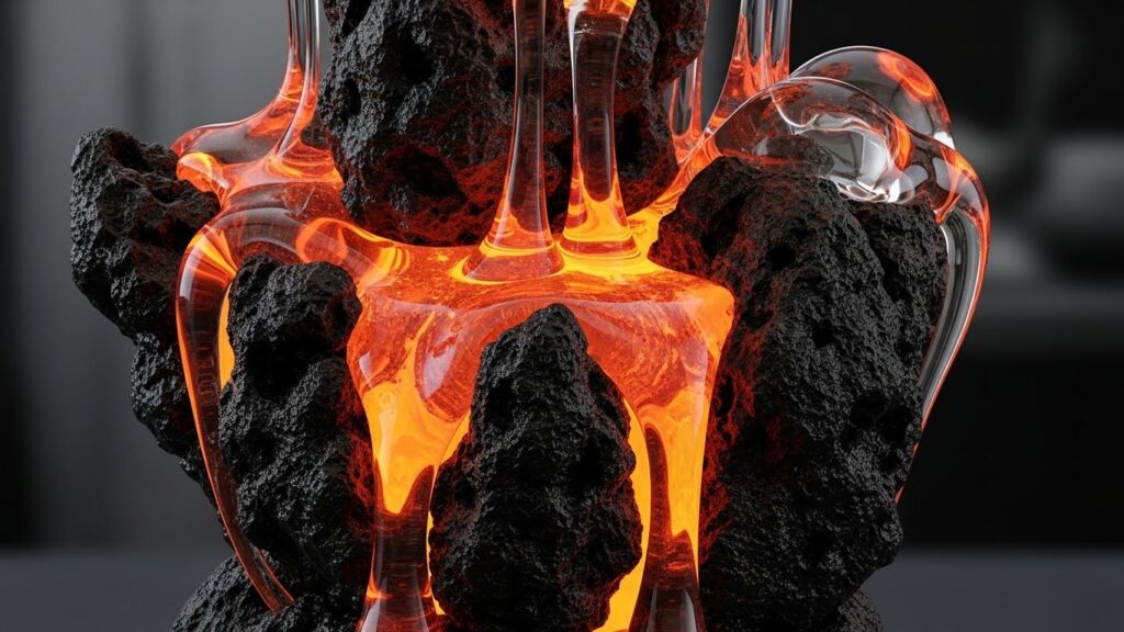 マグマリゾートが贈るのは、この地の溶岩と、ガラス工芸作家がコラボレーションした、唯一無二のトロフィーです。 赤く燃えるマグマの流動的なフォルムを、ガラスの中に閉じ込めたようなデザイン。 あるいは、実際の溶岩石を研磨し、貴金属と組み合わせたオブジェ。