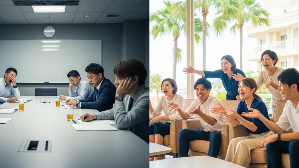 だからこそ、場所を変えるのです。 リゾートという開放的な空間へ行く。 寝食を共にし、同じ体験をする。 結論として、合宿形式なら「関係性の構築」と「ビジョンの浸透」を同時に達成できます。