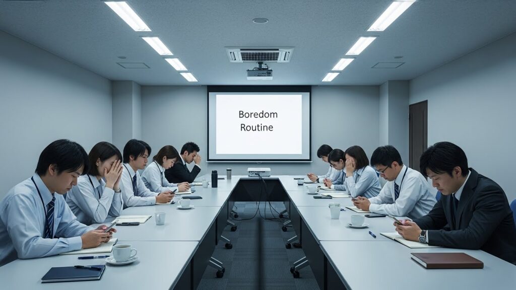 まず第一に、日常業務と同じ会議室で行うキックオフミーティングには限界があります。 電話やチャットの通知が鳴る環境では、意識を完全に切り替えることができません。 それに加えて、一方通行のプレゼンテーションだけでは、社員の心に火をつけることは不可能です。 「理解」はできても、「共感」や「熱狂」には至らないのです。