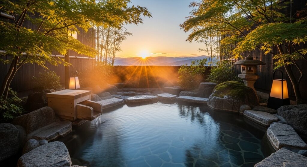 ── Day1 夕方:温泉で身体の重さが溶けていく
