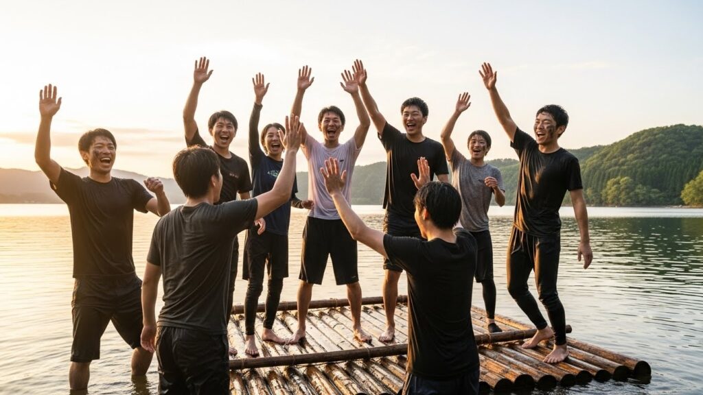 ここでは、社長も新入社員も同じジャージを着て、泥だらけになって笑い合います。 「上司にお酌をする」必要はありません。 必要なのは、仲間と協力してミッションをクリアすることだけ。