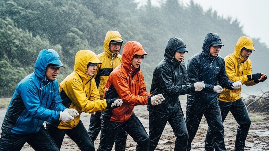 「タープを張って雨をしのぐ拠点を作ろう」 「いや、この雨を利用して、別の課題に切り替えよう」