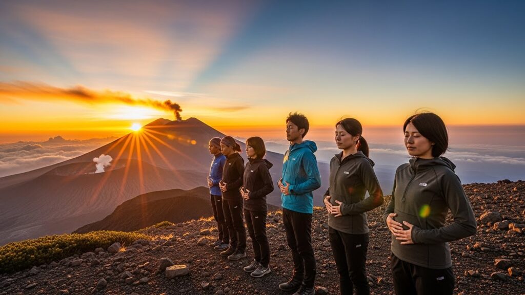 最終日の早朝。まだ星が残る暗闇の中、活火山のエネルギーポイントへ向かいます。 足元から伝わる地熱。 硫黄の匂い。 地球が生きている鼓動。