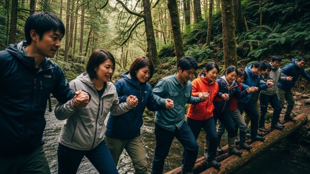 もし理念が「チームワーク」なら、全員で手を繋いで川を渡るミッション。 誰か一人が転べば、全員が濡れる。 「支え合うって、こういう重みなんだ」。